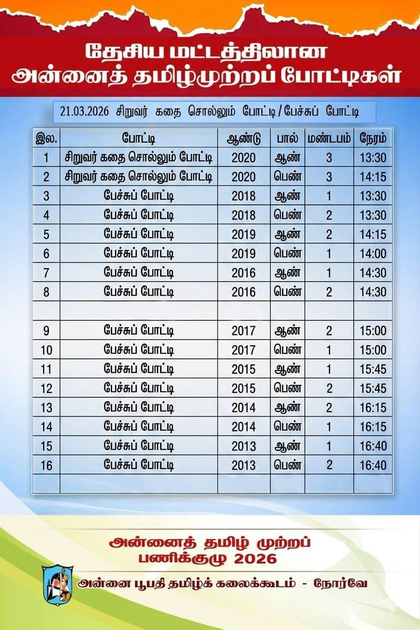 21.03.2026 – தேசிய மட்டத்திலான சிறுவர்கதை / பேச்சுப்போட்டிகள்
